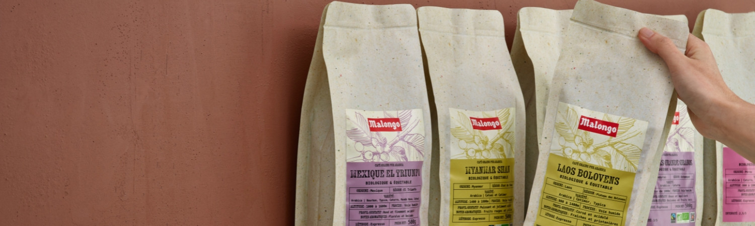 Descubre el sabor único de nuestros cafés en grano natural provenientes del comercio equitativo y la agricultura ecológica, como el Moka de Etiopía o Laos. Cafés éticos, producidos de manera responsable, respetando la tierra y el trabajador, con un tostado en Francia en 20 minutos. Una gama de puro origen biológico y también mezclas, como nuestro Deca Aqua, un descafeinado al agua sin solventes.